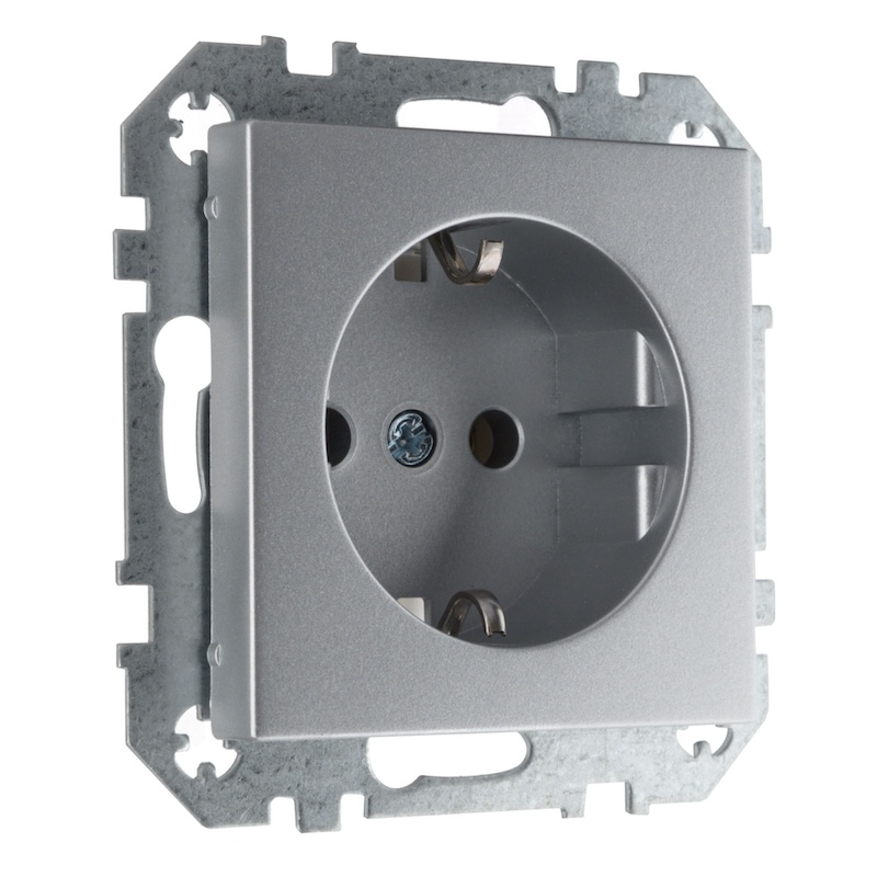 Розетка Epsilon, Retro Liregus, без шторок, с заземлением, одинарная, безвинтовые клеммы, цвет - алюминий