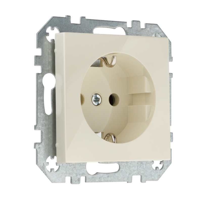 Розетка Epsilon, Retro Liregus, без шторок, с заземлением, одинарная, безвинтовые клеммы, цвет - слоновая кость