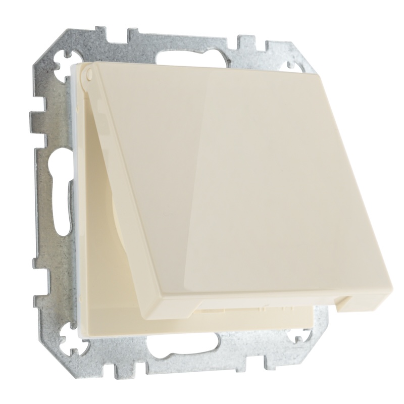 Розетка Epsilon, Retro Liregus, со шторками, с крышкой, с заземлением, одинарная, безвинтовые клеммы, цвет - слоновая кость
