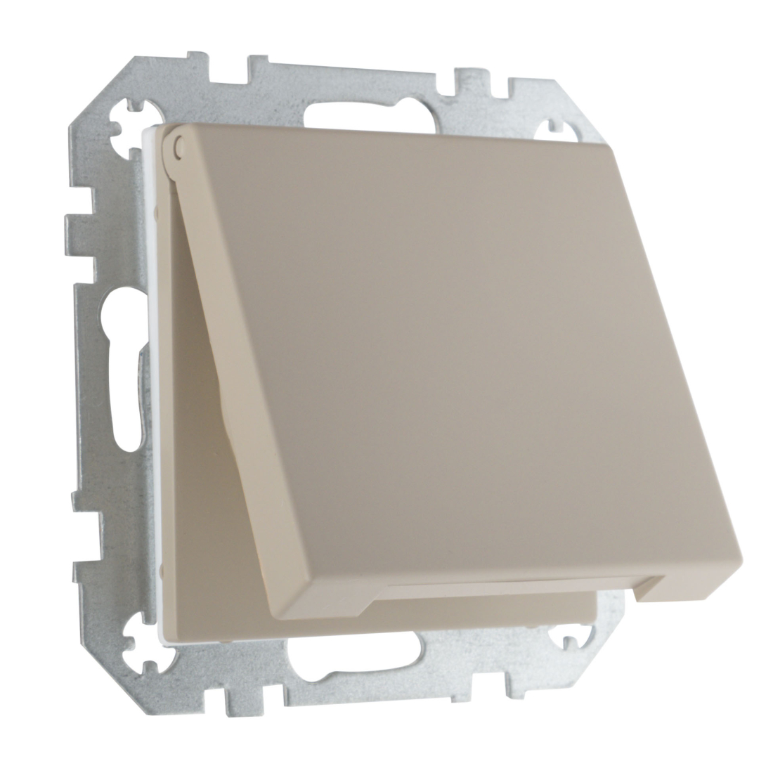 Розетка Epsilon, Retro Liregus, со шторками, с крышкой, с заземлением, одинарная, безвинтовые клеммы, цвет - кремовый матовый