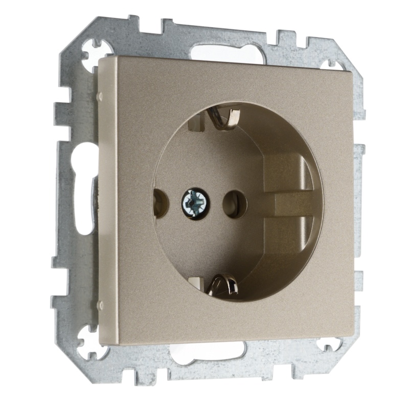 Розетка Epsilon, Retro Liregus, со шторками, с заземлением, одинарная, безвинтовые клеммы, цвет - шампань