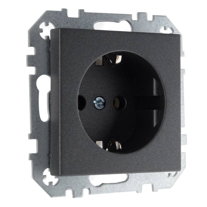 Розетка Epsilon, Retro Liregus, без шторок, с заземлением, одинарная, винтовые клеммы, цвет - антрацит