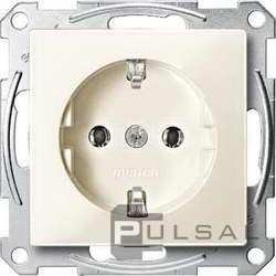 Розетка M-Trend, M-Smart, M-Plan, M-Elegance, без шторок, с заземлением, одинарная, безвинтовые клеммы, цвет - бежевый