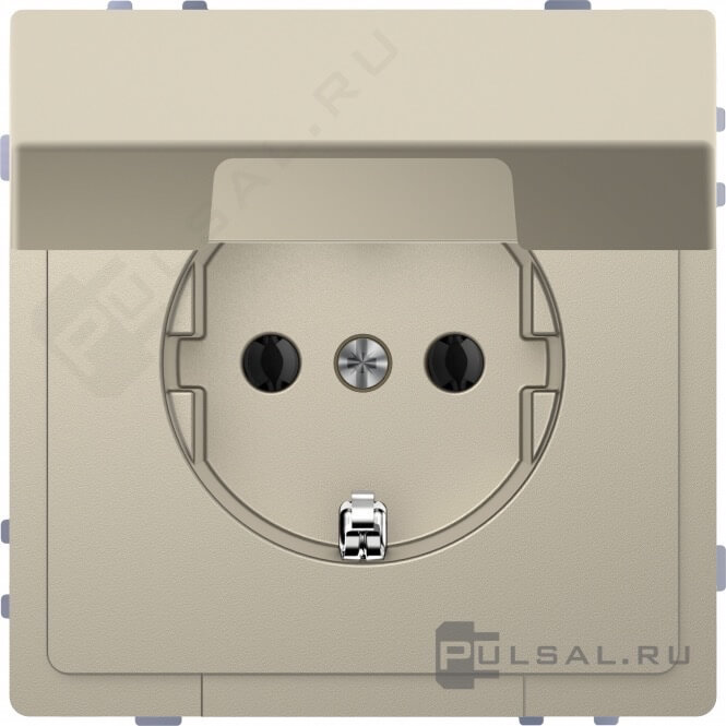 Розетка D-Life, со шторками, с крышкой, с заземлением, одинарная, безвинтовые клеммы, цвет - сахара