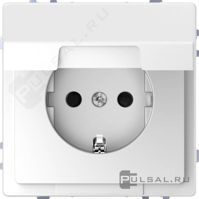 Розетка D-Life, со шторками, с крышкой, с заземлением, одинарная, безвинтовые клеммы, цвет - белый лотос