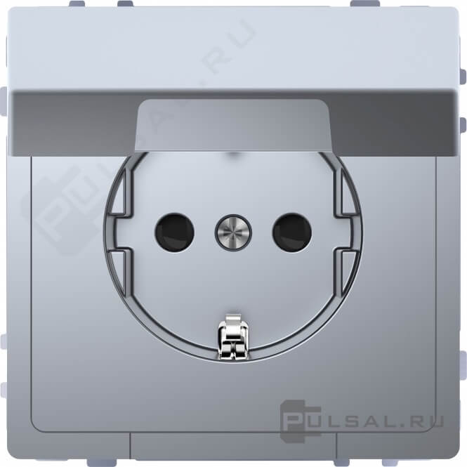 Розетка D-Life, со шторками, с крышкой, с заземлением, одинарная, безвинтовые клеммы, цвет - нержавеющая сталь