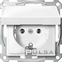 Розетка M-Trend, M-Smart, M-Plan, M-Elegance, M-Pure, без шторок, с крышкой, с заземлением, одинарная, безвинтовые клеммы, цвет - полярно-белый