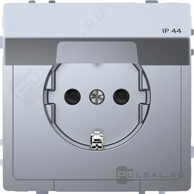 Розетка D-Life, со шторками, с крышкой, с заземлением, одинарная, безвинтовые клеммы, цвет - нержавеющая сталь