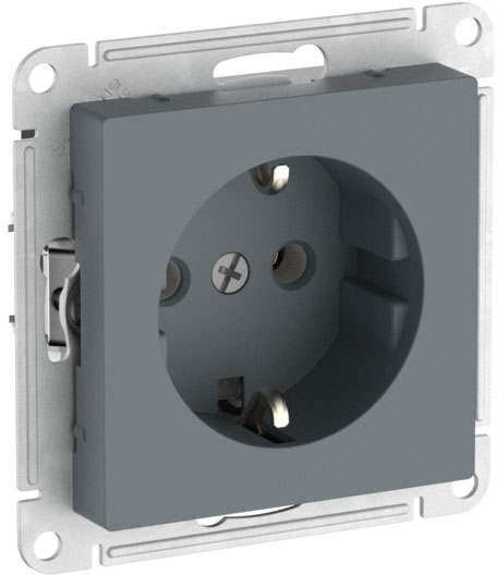 Розетка (безвинтовые клеммы) Atlas Design Antique, AtlasDesign Air, Atlas Design, без шторок, с заземлением, одинарная, безвинтовые клеммы, цвет - грифель