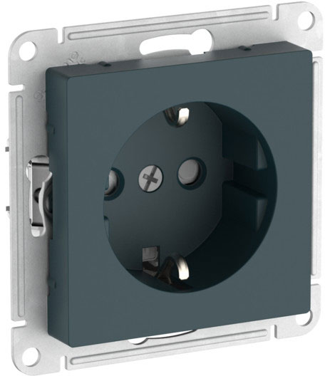 Розетка (безвинтовые клеммы) Atlas Design Antique, AtlasDesign Air, Atlas Design, со шторками, с заземлением, одинарная, безвинтовые клеммы, цвет - изумруд