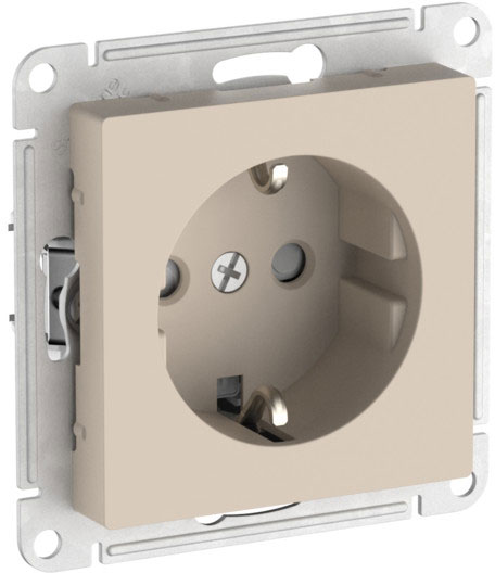 Розетка (безвинтовые клеммы) Atlas Design Antique, AtlasDesign Air, Atlas Design, со шторками, с заземлением, одинарная, безвинтовые клеммы, цвет - песочный