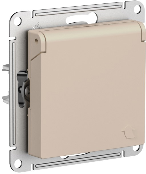 Розетка Atlas Design Antique, AtlasDesign Air, Atlas Design, со шторками, с крышкой, с заземлением, одинарная, винтовые клеммы, цвет - песочный