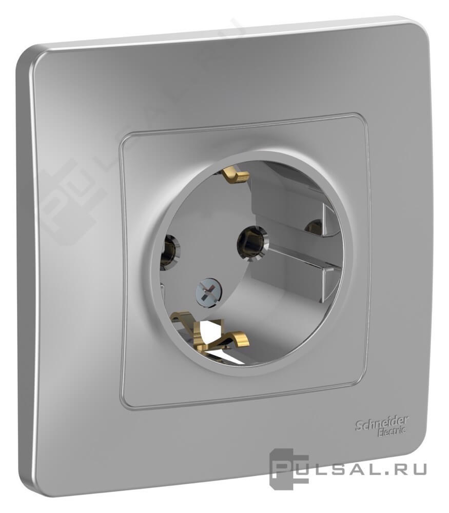 Розетка с рамкой Blanca, без шторок, с заземлением, одинарная, цвет - алюминий
