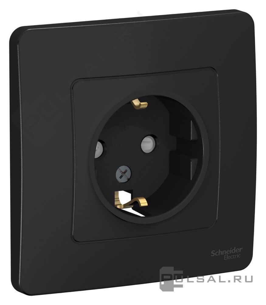 Розетка с рамкой Blanca, со шторками, с заземлением, одинарная, цвет - антрацит