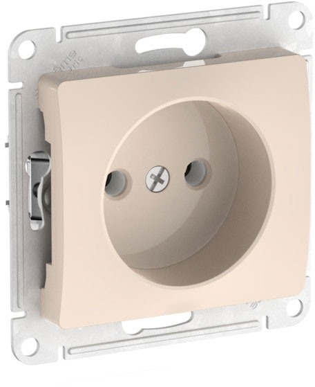 Розетка (безвинтовые клеммы) Glossa, без шторок, без заземления, одинарная, безвинтовые клеммы, цвет - бежевый