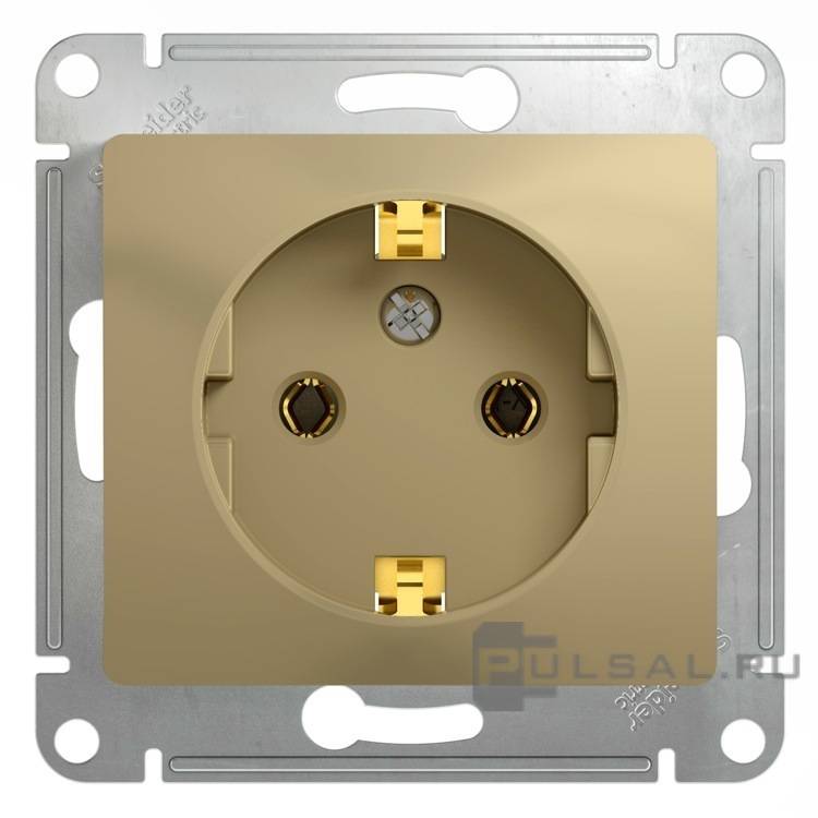Розетка Glossa, без шторок, с заземлением, одинарная, винтовые клеммы, цвет - титан