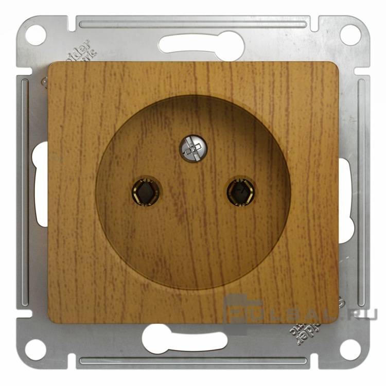Розетка Glossa, без шторок, без заземления, одинарная, винтовые клеммы, цвет - дуб