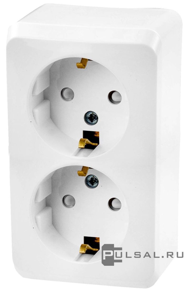 Розетка Этюд, без шторок, с заземлением, двойная, винтовые клеммы, цвет - белый