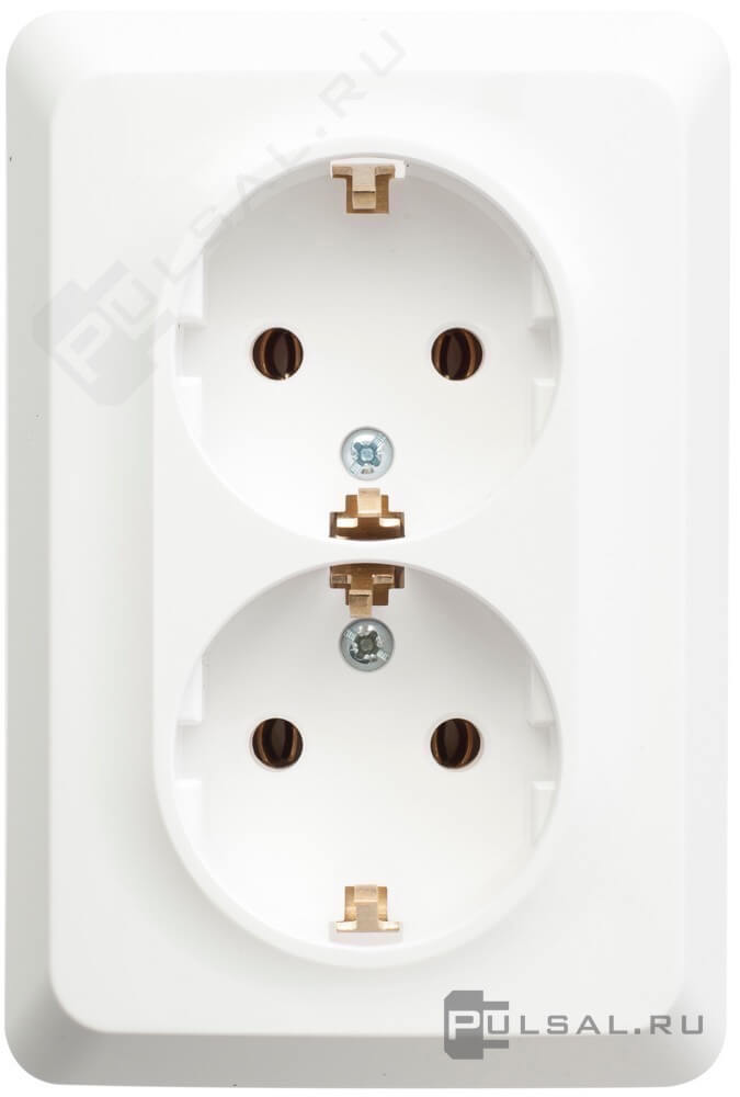 Розетка Этюд, без шторок, с заземлением, двойная, винтовые клеммы, цвет - белый