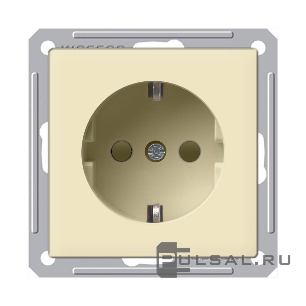 Розетка W59, со шторками, с заземлением, одинарная, винтовые клеммы, цвет - слоновая кость