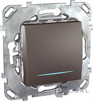 Кнопка Н.О. Unica Quadro, Unica Top, Unica Class, одноклавишный, с подсветкой, цвет - графит
