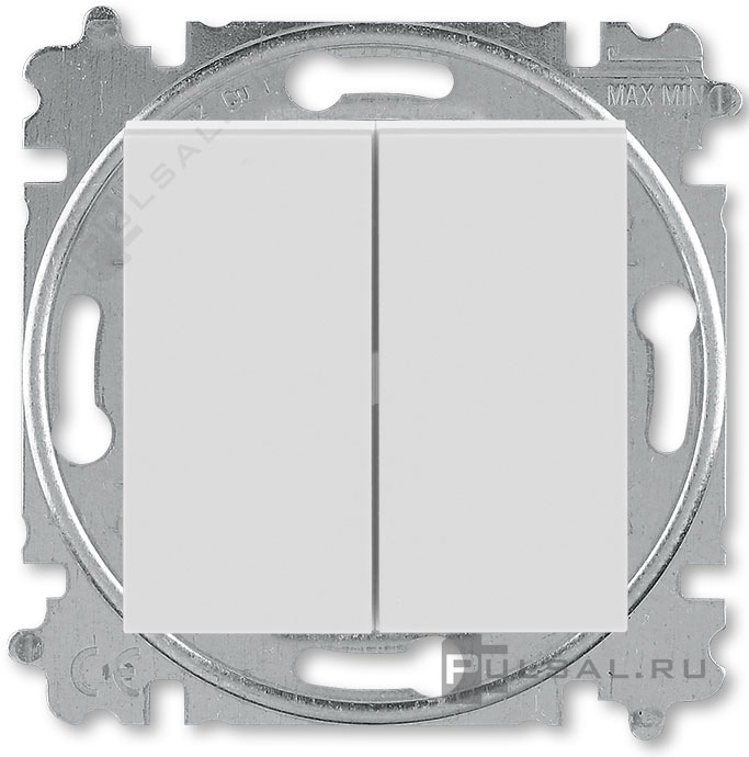 Выключатель Levit, двухклавишный, без подсветки, цвет - серый / белый