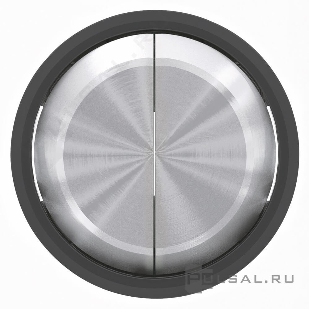 Клавиши, кольцо "чёрное стекло" SKYmoon, двухклавишный, без подсветки, цвет - нержавеющая сталь, черное стекло