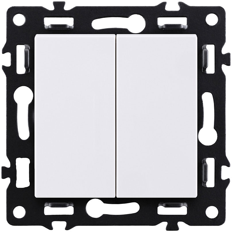 Выключатель Asthetik, двухклавишный, без подсветки, цвет - белый