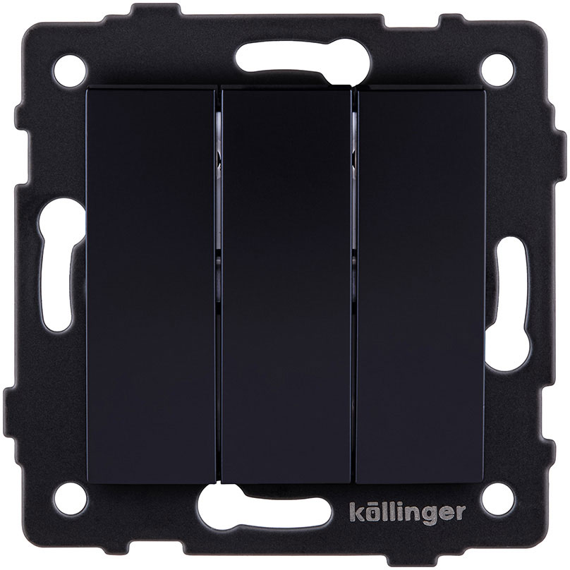 Выключатель с изогнутой клавишей Aspekt, Eleganz, Reflex, трехклавишный, без подсветки, цвет - черный