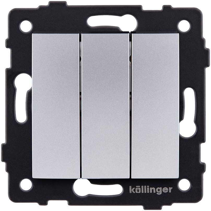 Выключатель с изогнутой клавишей Aspekt, Eleganz, Reflex, трехклавишный, без подсветки, цвет - серый