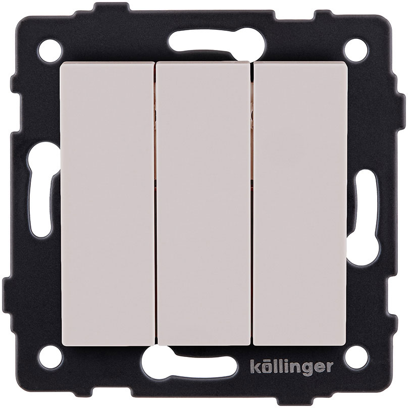 Выключатель с плоской клавишей Aspekt, Eleganz, Reflex, трехклавишный, без подсветки, цвет - кашемир матовый