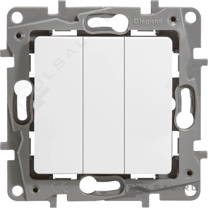 Выключатель Etika, трехклавишный, без подсветки, цвет - белый