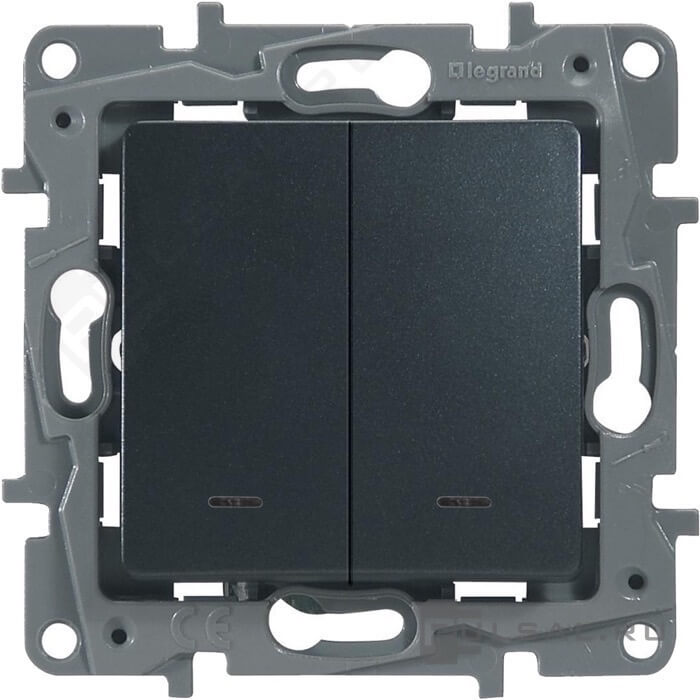 Переключатель Etika, двухклавишный, с подсветкой, цвет - антрацит