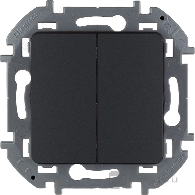 Выключатель Inspiria, двухклавишный, без подсветки, цвет - антрацит
