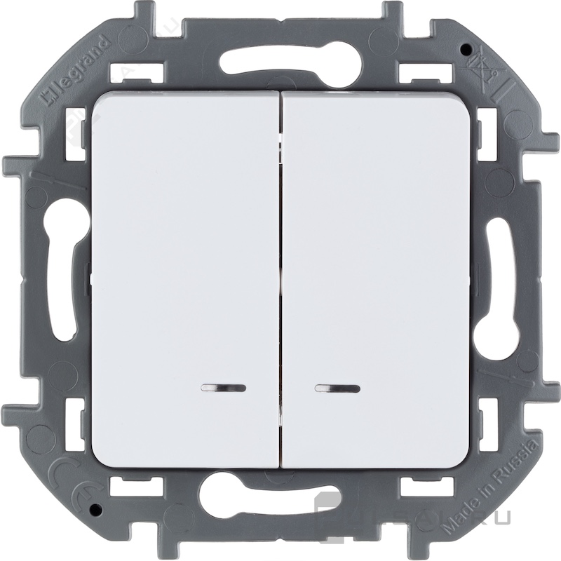 Выключатель Inspiria, двухклавишный, с подсветкой, с индикацией, цвет - белый