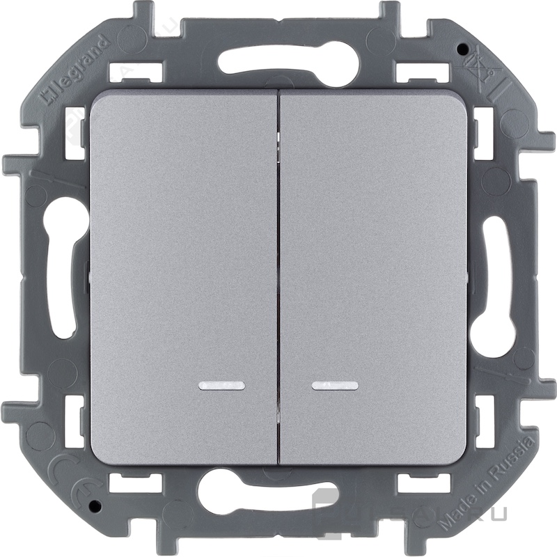 Выключатель Inspiria, двухклавишный, с подсветкой, с индикацией, цвет - алюминий