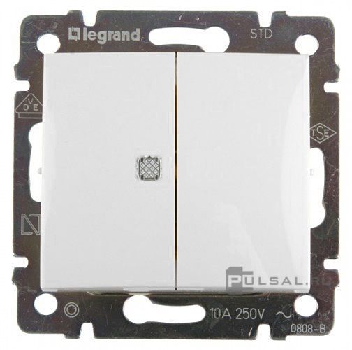 Выключатель Valena, двухклавишный, с подсветкой, цвет - белый