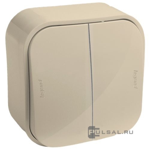 Выключатель Quteo, двухклавишный, без подсветки, с возможностью подсветки, цвет - слоновая кость