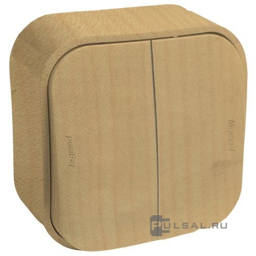 Переключатель Quteo, двухклавишный, без подсветки, с возможностью подсветки, цвет - дерево