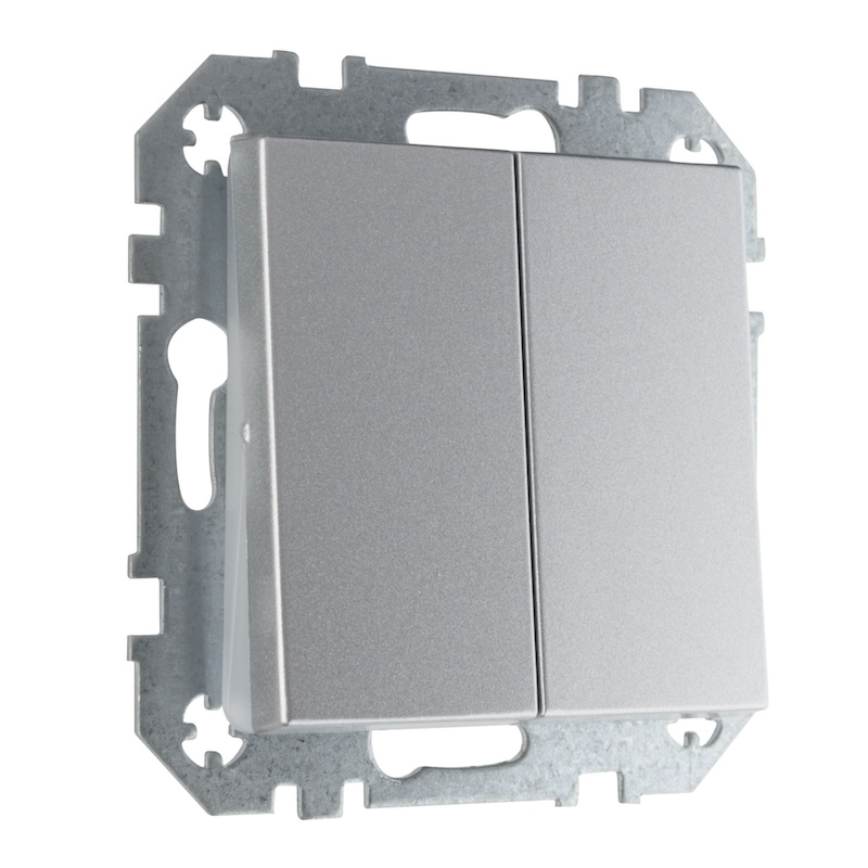 Переключатель Epsilon, Retro Liregus, двухклавишный, без подсветки, с возможностью подсветки, цвет - алюминий