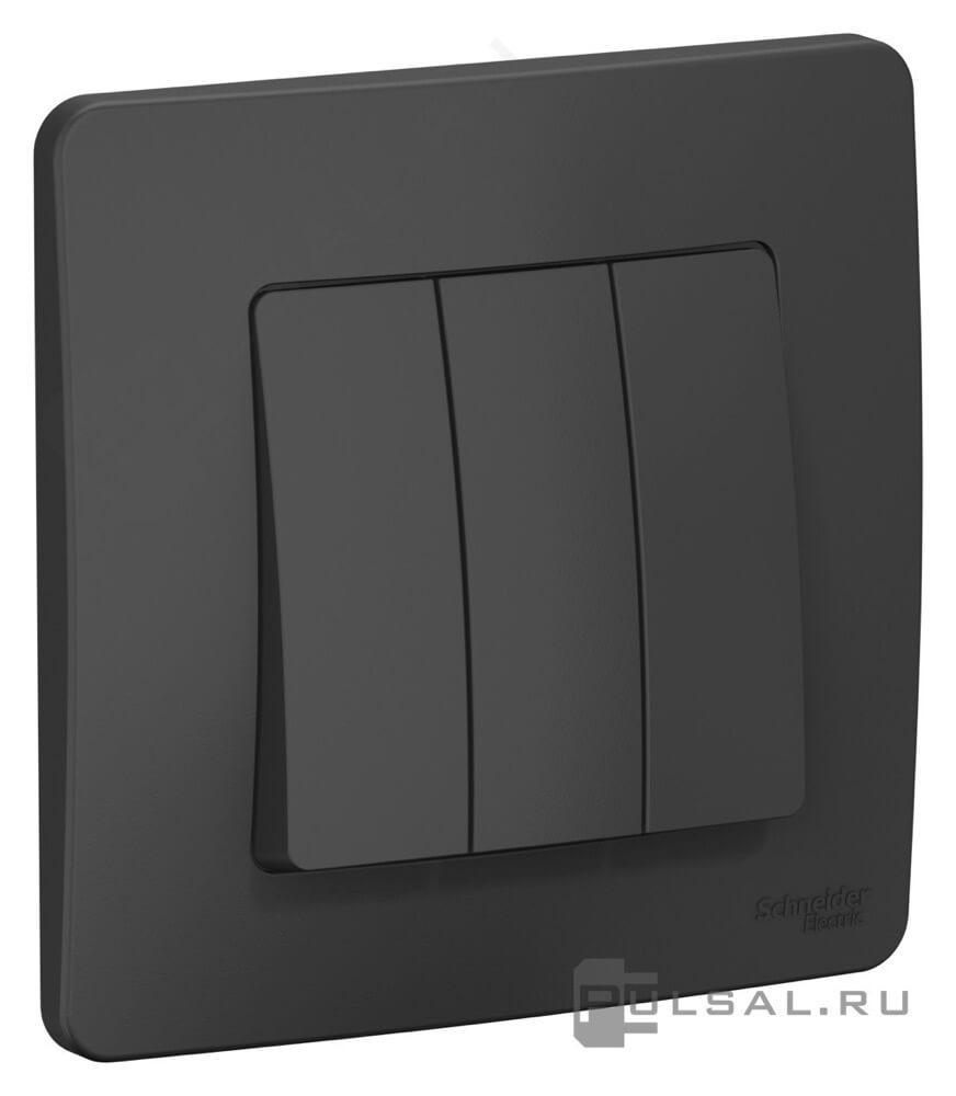 Выключатель 10 А Blanca, трехклавишный, без подсветки, цвет - антрацит