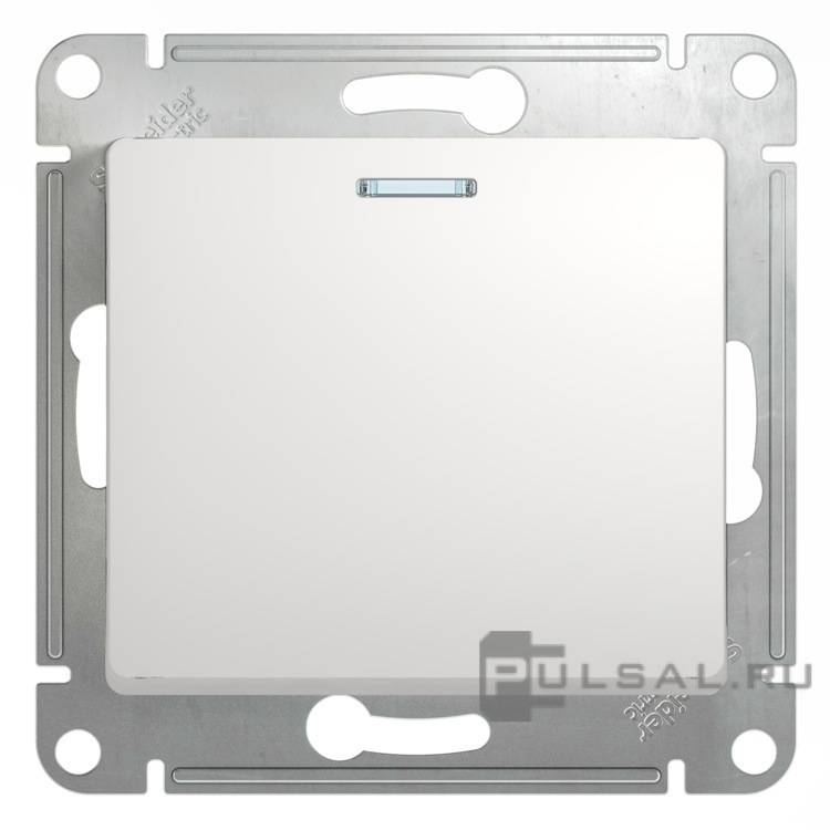 Выключатель Glossa, одноклавишный, с подсветкой, цвет - белый