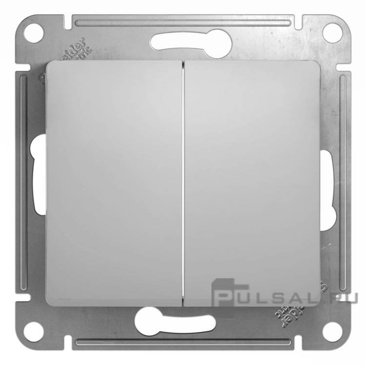 Переключатель Glossa, двухклавишный, без подсветки, цвет - алюминий