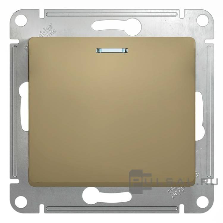 Выключатель Glossa, одноклавишный, с подсветкой, цвет - титан