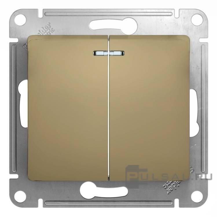 Выключатель Glossa, двухклавишный, с подсветкой, цвет - титан