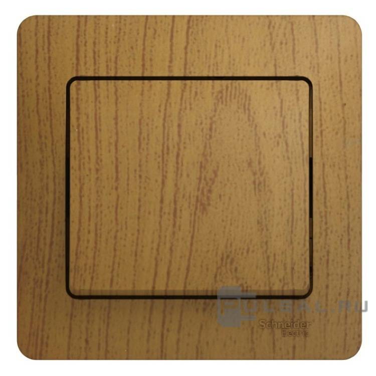 Выключатель с рамкой Glossa, одноклавишный, без подсветки, цвет - дуб