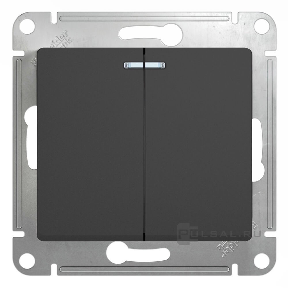 Выключатель Glossa, двухклавишный, с подсветкой, цвет - антрацит