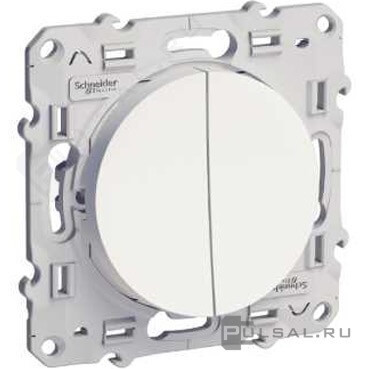 Выключатель Odace, двухклавишный, с подсветкой, цвет - белый