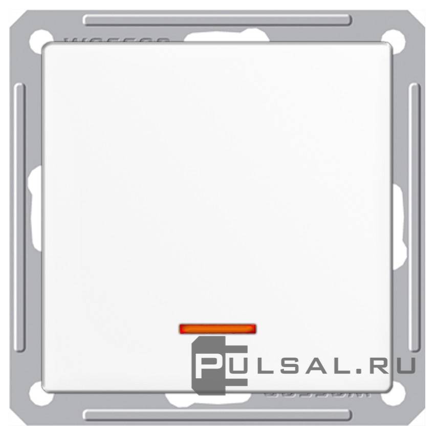 Выключатель 10 А W59, одноклавишный, с подсветкой, цвет - белый