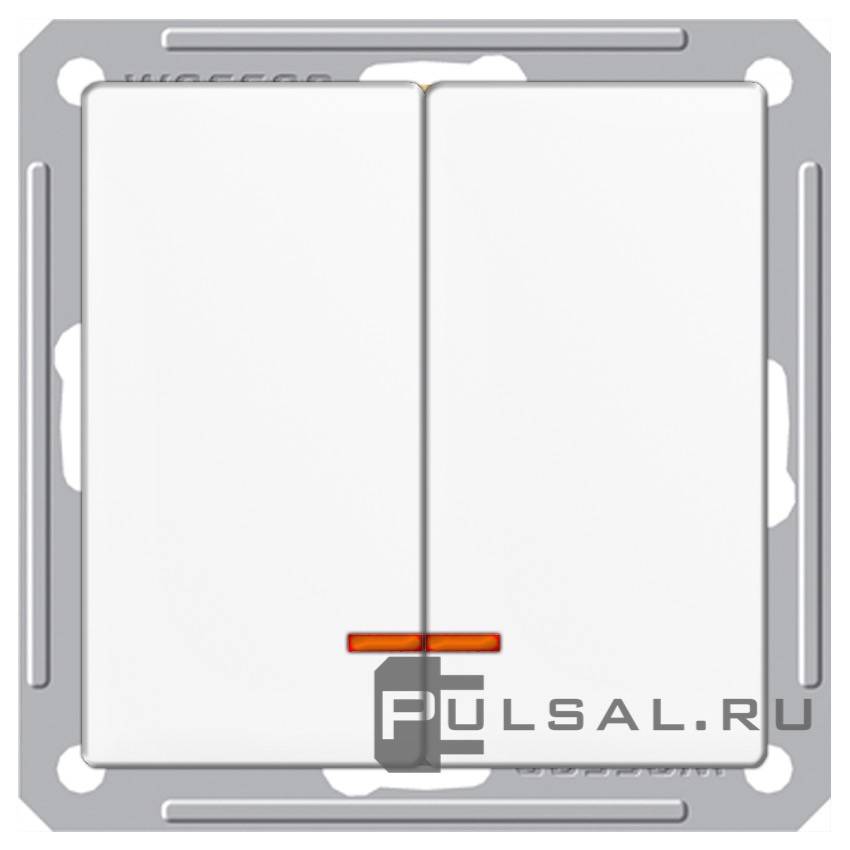 Выключатель 10 А W59, двухклавишный, с подсветкой, цвет - белый